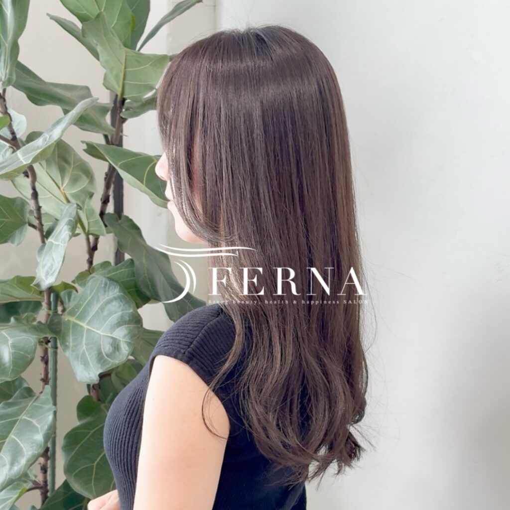 重く見えがちなロングヘアも、透明感のあるカラーと軽やかなレイヤーで大人っぽく垢抜けた印象に。