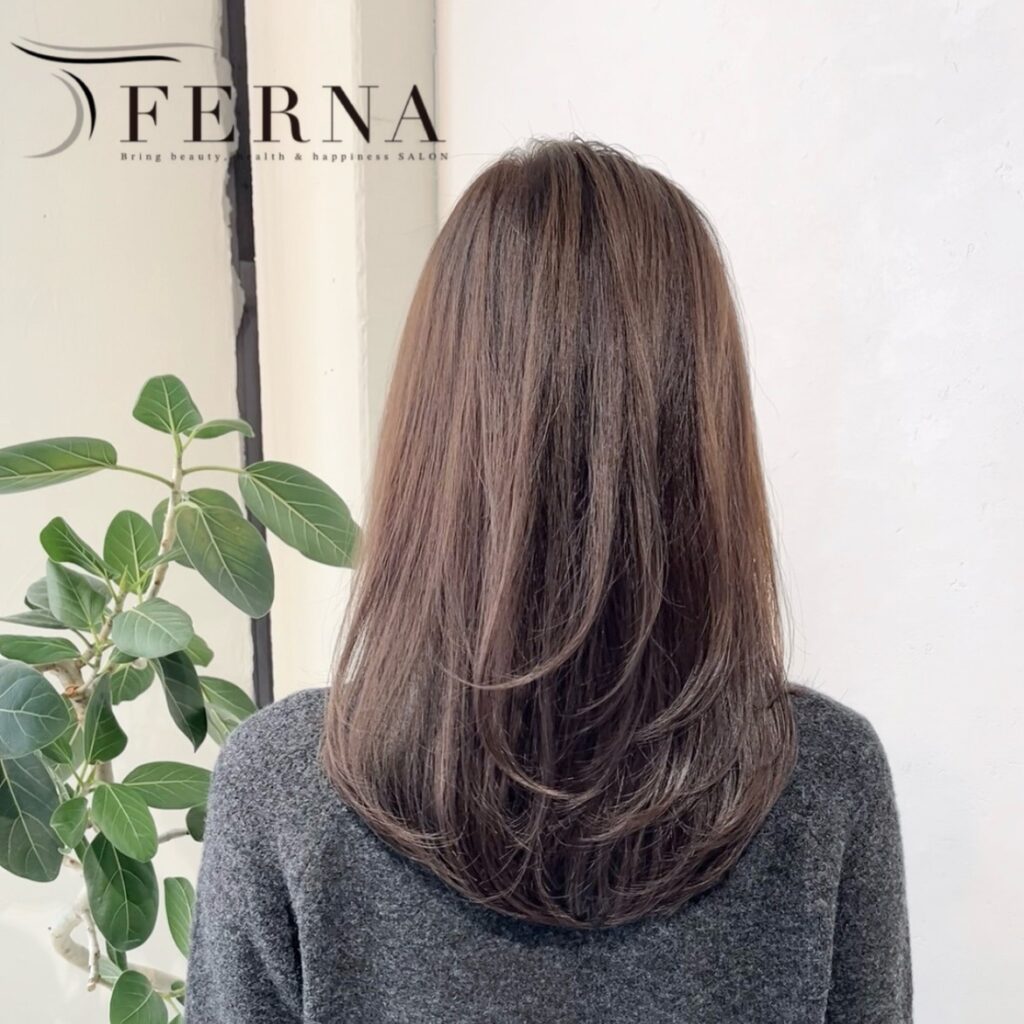 毛先の特に明るく褪色してた部分をカットし、裾に厚みを残しながらレイヤーを入れました